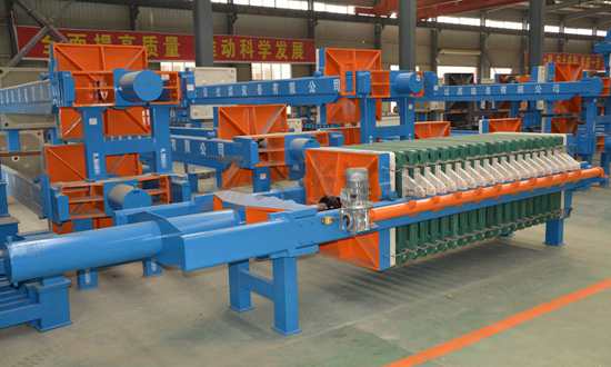 一次快速拉开压滤机,采用加长型的油缸驱动,配合加长机架,通过不锈钢链条(或滑片)带动连接每一块滤板,在压紧板的带动下实现滤板的一次性全部打开。配合自动振打装置,对等距离拉开的滤板实现震动辅助卸料功能,可实现全自动卸料。